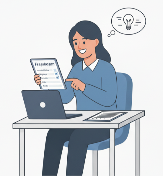 Sie können direkt online beauftragen, ganz unkompliziert. Nach der Buchung erhalten Sie sofort den Zugang zum Fragebogen. Wenn Sie lieber zuerst persönlich sprechen möchten, ist das natürlich auch möglich – wir richten uns da ganz nach Ihnen.