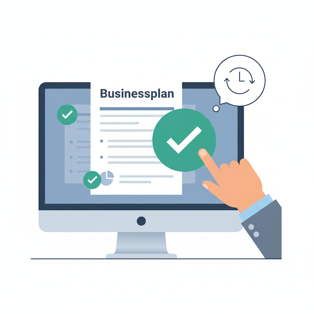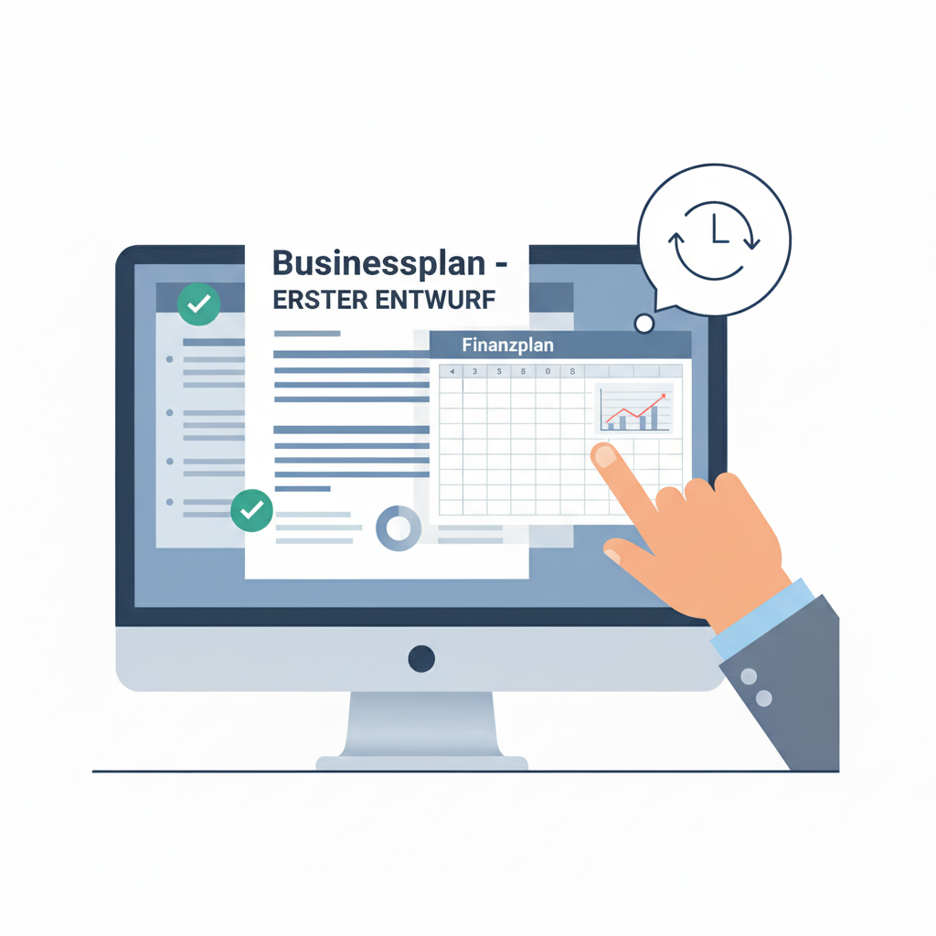 Wir übernehmen die komplette Ausarbeitung von Business- und Finanzplan – AfA-konform, nachvollziehbar, realistisch. Sie erhalten innerhalb von 3–5 Werktagen (oder in 24 Stunden für Express-Bestellungen) den Entwurf per E-Mail.