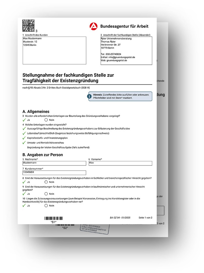 Tragfähigkeitsprüfung – Fachkundige Stellungnahme für den Gründungszuschuss